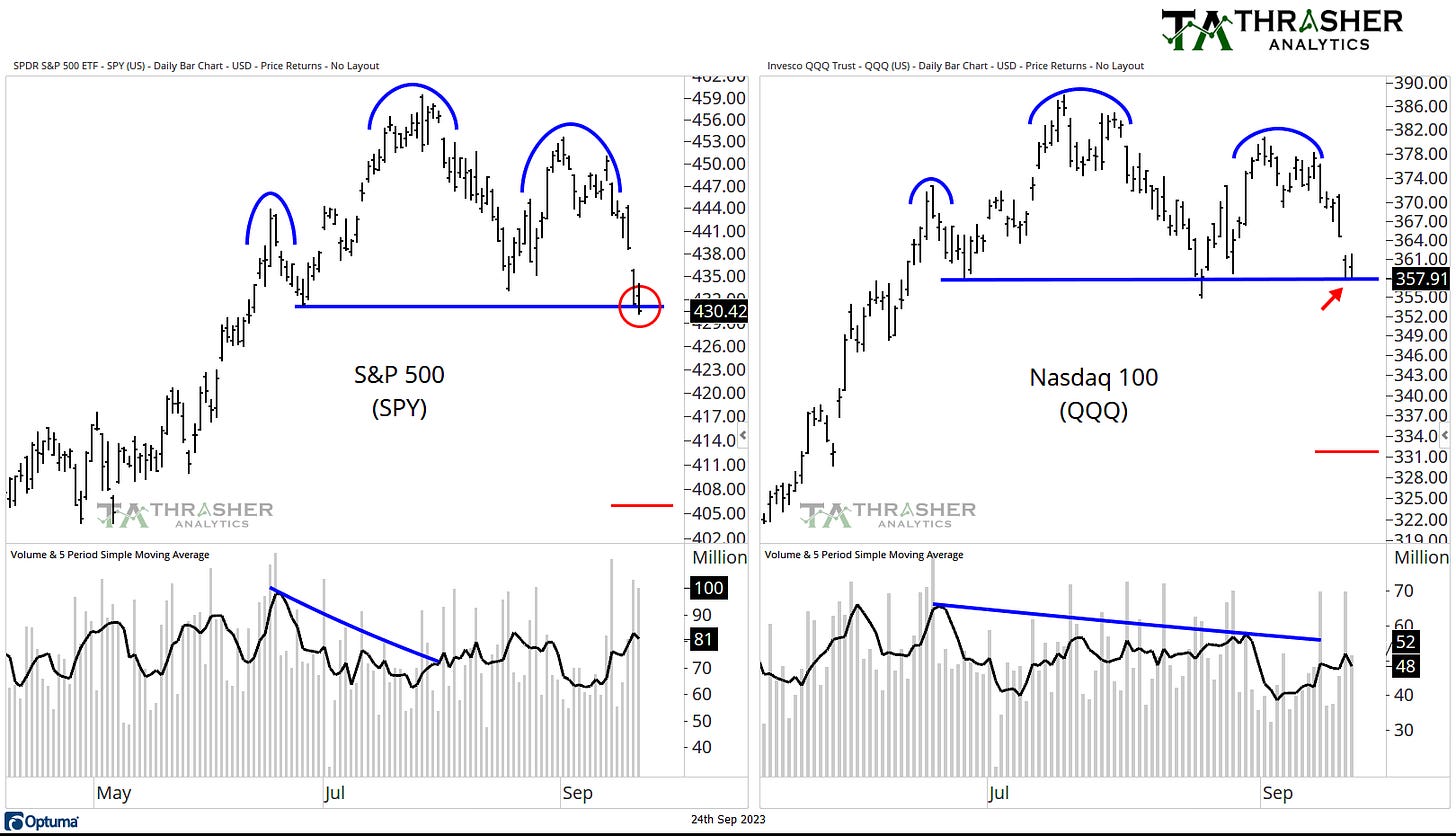 Both the Nasdaq 100 and S&P 500 are forming Head & Shoulders patterns on their daily chart.