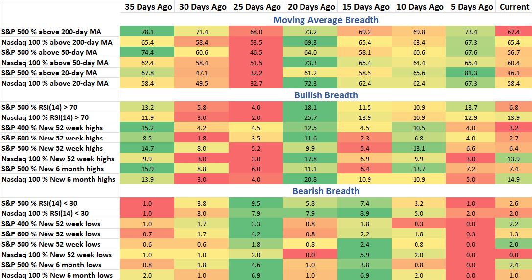 Breadth data is starting to be concerning. With the new high in SPX on Friday, only 46% of stocks are still above their 20-day MA and barely half are above their 50-day average. In today’s note I share a look at the drawdown data for individual stocks as well as a look at the performance data of stocks that are up or down 5+ or 10+% and what this data has meant for the market over the last year.