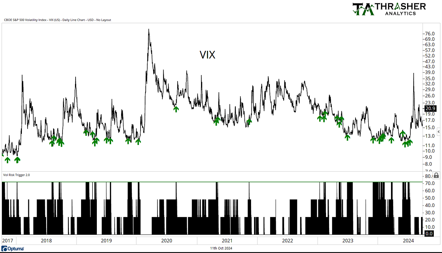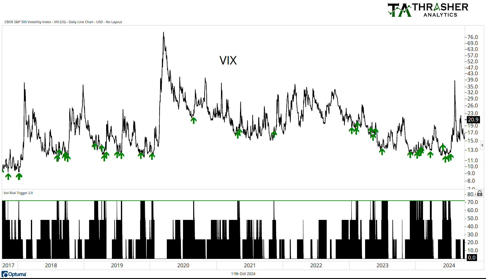 Volatility Risk Trigger - A model based on award-winning research combined with market-derived “symptoms” that have led to large swings in the Volatility Index.