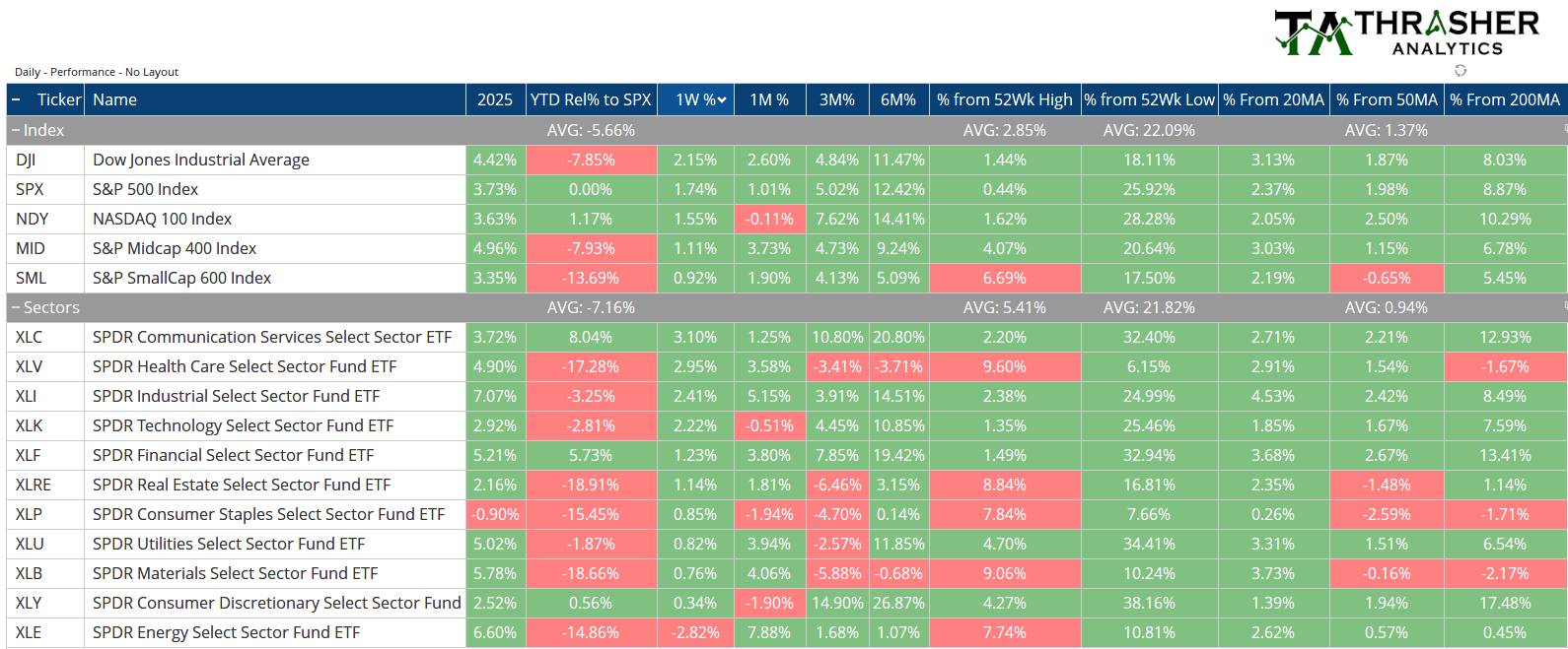 Index & Sector Performance Summary