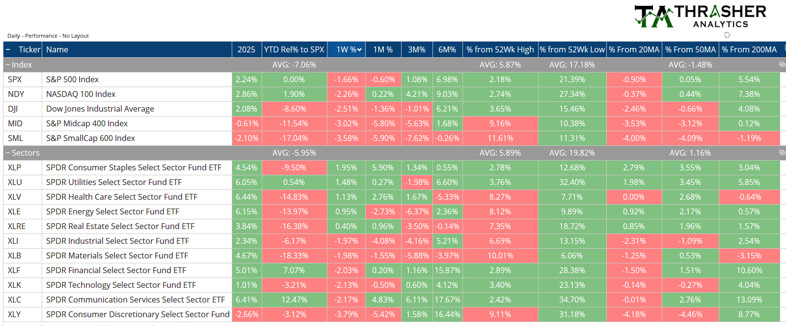 Last week’s call on volatility was timely, with a decent size move occurring on Friday accompanied by the largest decline in large cap equities so far this year. We’ll see what continues from it with breadth continued to look weak as 6% of stocks are at a 6-month low, 24.5% at a 20-day low, over 75% fell on Friday and almost 60% are down 10% or more. Risk Appetite took a big step down this week as several ratios weakened. Small caps are off by over -10% now for one example. SPX remains above long-term support, but it’s on watch should we continue to fall this week.