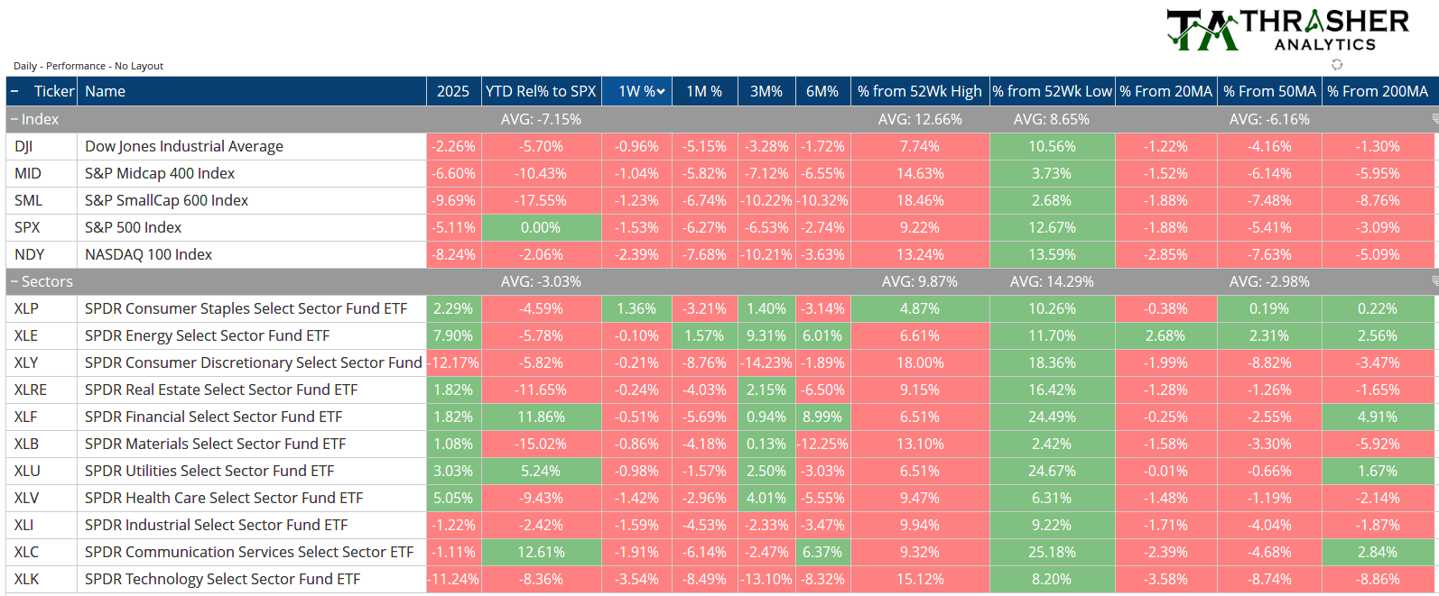 Index & Sector Performance Summary