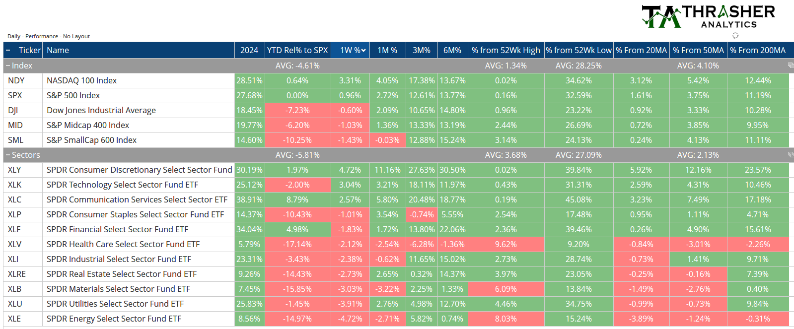 Index & Sector Performance Summary