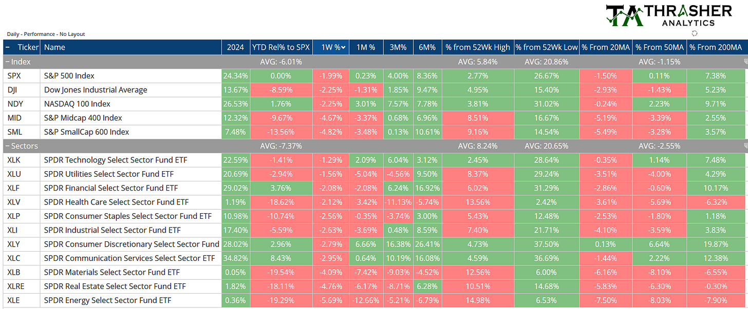Powell disappointed the market with the Fed now no longer expecting to reach their inflation target. Stocks sold off and fell below the 20- and 50-day moving average on the SPX. The Index finished the week down -2%, with XLK, XLU, and XLF being the best performing sectors, however all sectors were red by Friday. 57% of stocks are now down -10% or more and Risk Appetite is back under 50. Friday saw the Index take a bounce. Looking under the hood, NVDA accounted for 20% of the move in the Index and Apple made up 12%, so almost one-third of the resulting bounce in the S&P 500 was from just these two stocks. This week’s Spotlight Chart looks at one breadth chart that suggests we could see a short-term bounce in equities.