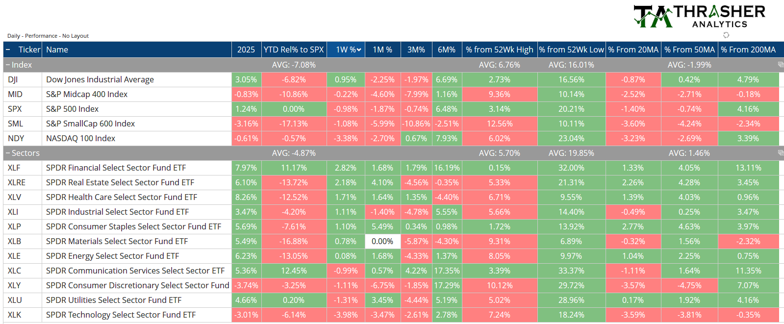 Index & Sector Performance Summary