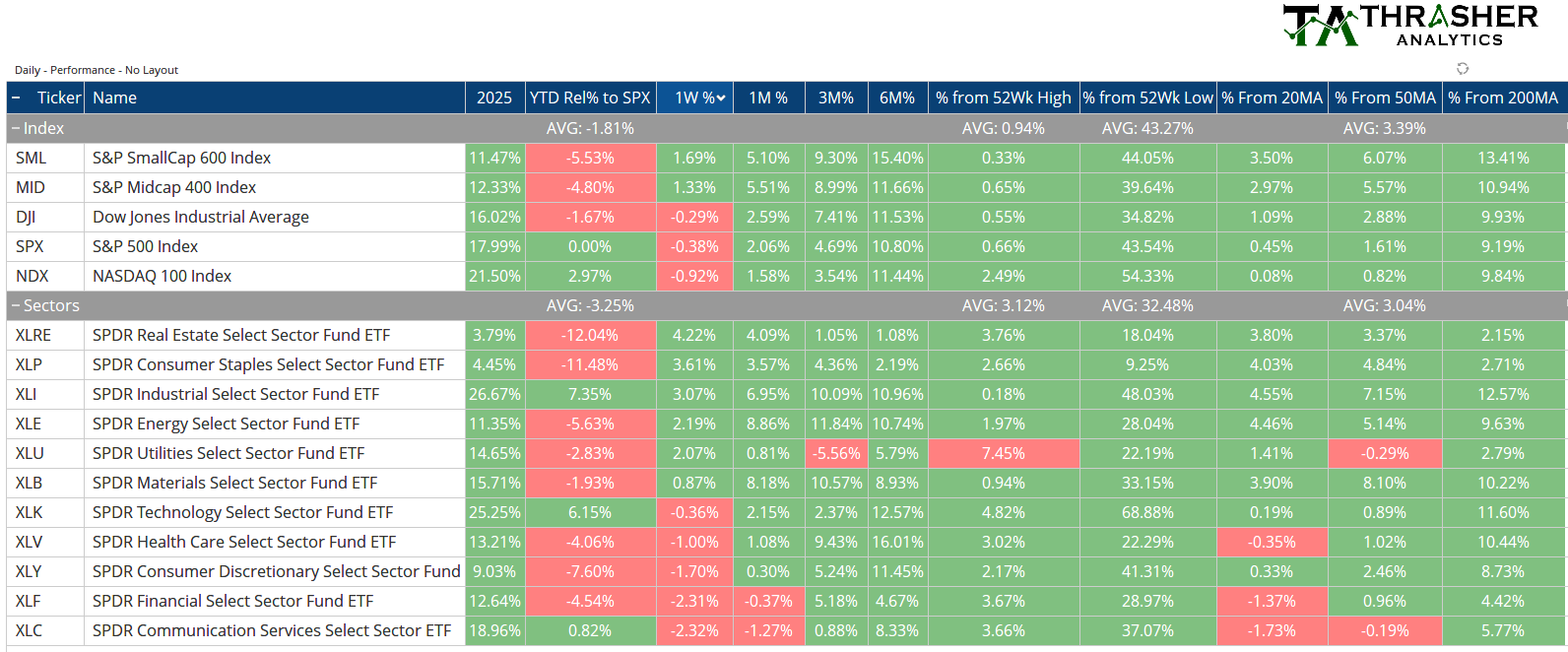 Index & Sector Performance Summary